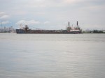 We slide on down and picked up the trail along the river at Riverside Park, over rail road and service trails we made our way by Fort Wayne and knocked but could not come in? From there over the Rouge at ‘Bat Man’ bridge we cut hard left and found ourselves cruising in on East Anchor Street, determined to stay on the back alley trail as much as possible. With a left and spun around right we turned left on Belanger Park Road. Slicing through Industrial Buildings ‘Fortress of Boom’, Banging, Clanging, Stamping….. We feel out of the stinky industrial tunnel and emerged through the green gates/park entry and felt better when we arrived down at the water. It is an amazing site, vistas unlike any along the Detroit River walk. While we were there we saw a Tug Boat come to the rescue of a wayward freight liner spun sideways in the current trying to ‘Back-Into’ the Canadian Port.